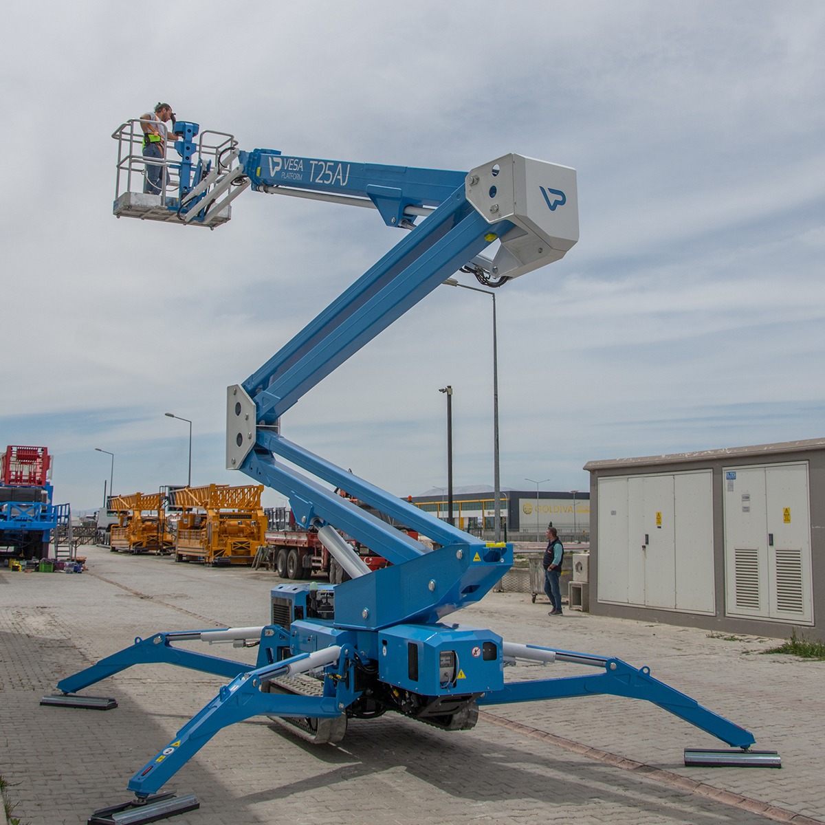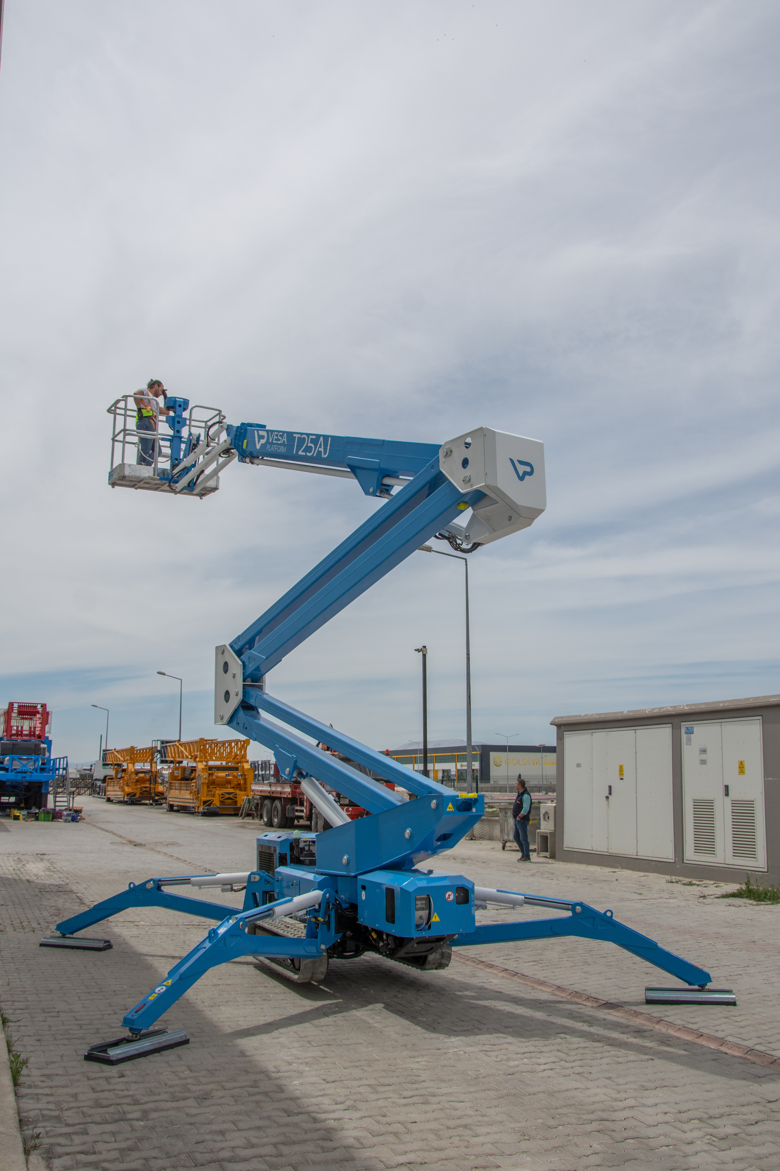 | • Dizel Motor • İç Mekan Kullanım için 230V Elektrik Motoru (Batarya opsiyonunda mevcut değildir) • Tam Oransal Kontrol • Radyo Uzaktan Kumanda ile Sürüş, Ayak ve Platform Kullanımı • Elektrohidrolik Ayak Kontrol ve Otomatik Dengeleme Sistemi • vSAFE Elektronik Stabilite ve Limitleme Sistemi • Otomatik Toplama Fonksiyonu • Denge Dışında Otomatik Kesme • Acil Durum El Pompası • 1.4 x 0.7 x 1.1m Aluminyum Sepet • Bilgi ve Destek için Çoklu Dil Destekli Renkli Ekran • 360° Kule Dönüş • ± 90° Sepet Dönüş • Forklift Cepleri (T16AJ, T18AJ) • Palet Uzatma • Kolay Sökülebilir Sepet • Jib Bom • Sepette 220V 16A Güç Çıkışı • Elektrik Motoru Otomatik Start-Stop • Tek Kapı Genişliği (T16AJ, T18AJ) |